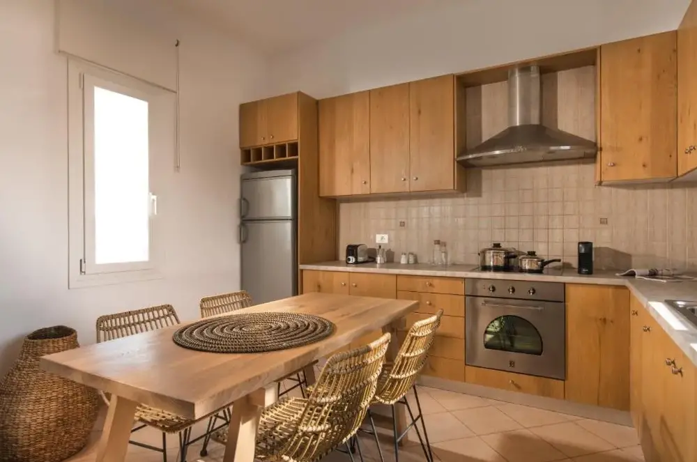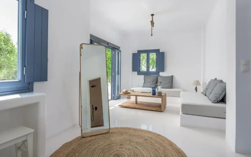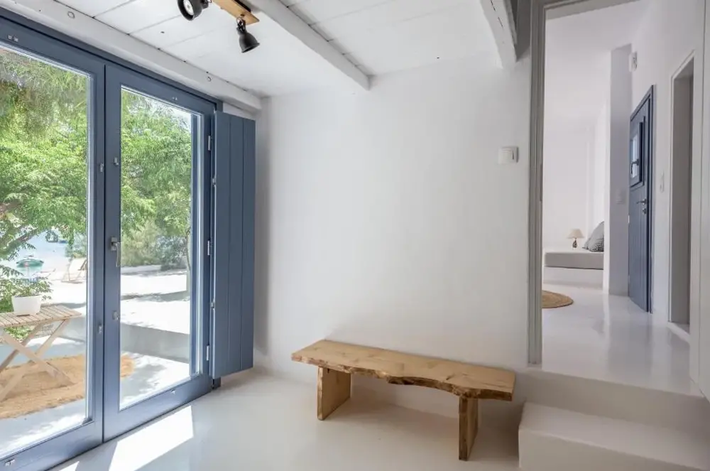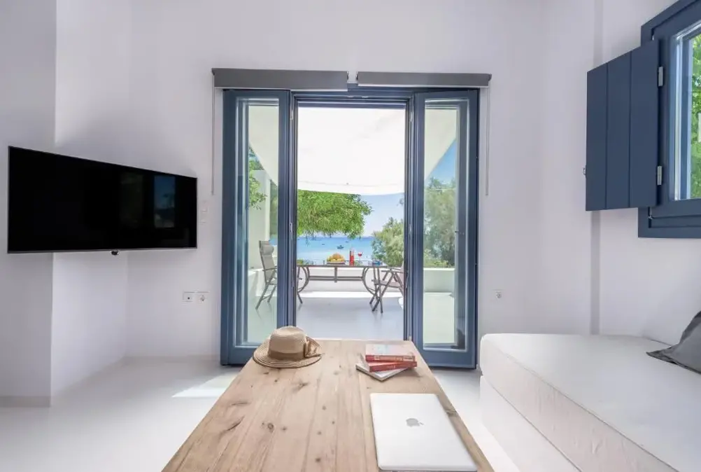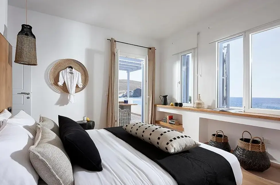 Residence 8 BEAUFORT offers a unique blend of comfort and convenience nestled in Pollonia, Greece. This private beachfront retreat provides direct access to the pristine sands of Pollonia Beach, just 200 meters away, making it ideal for those seeking relaxation and proximity to nature.