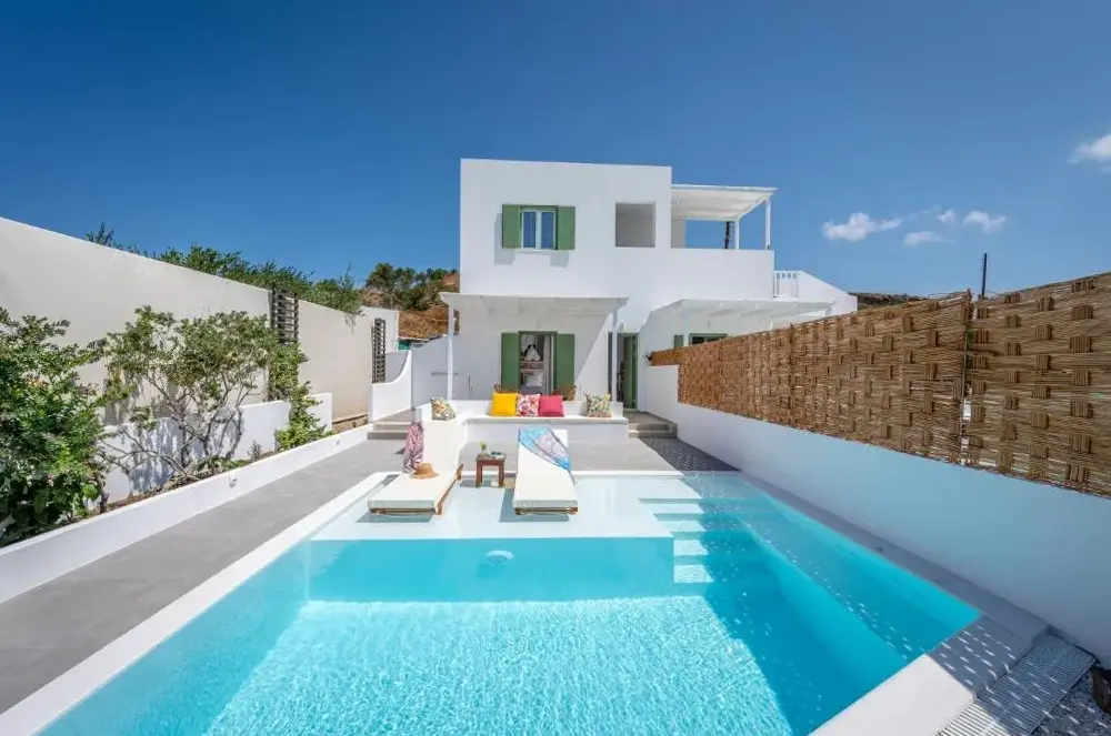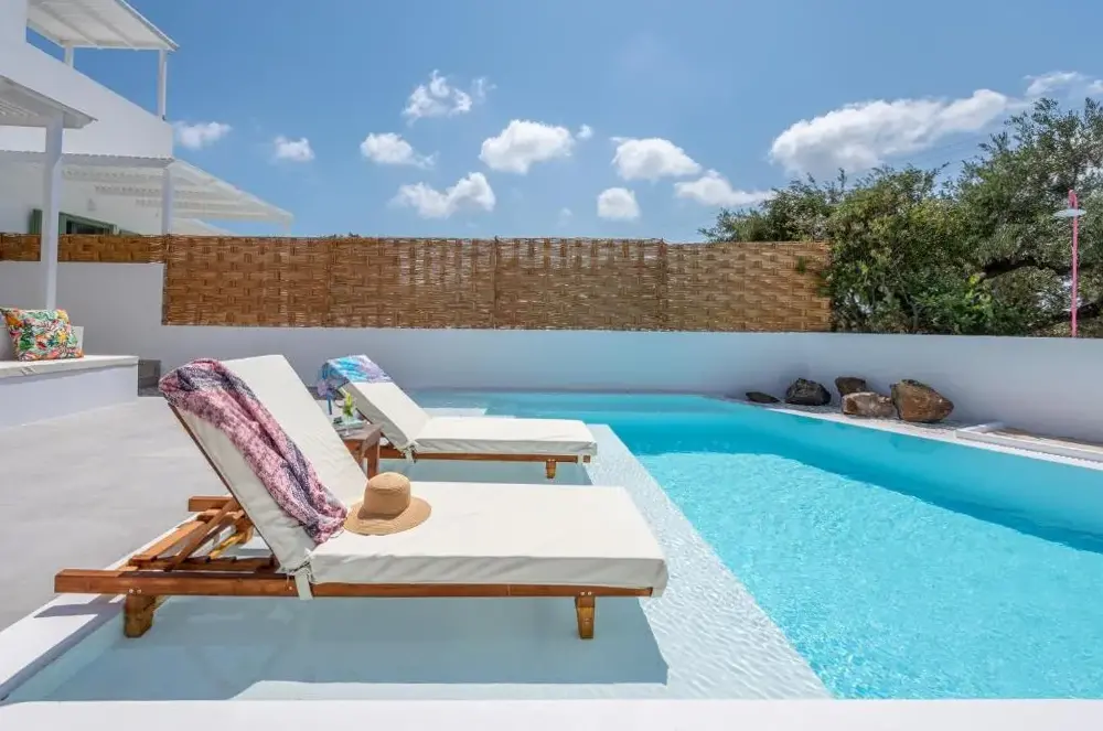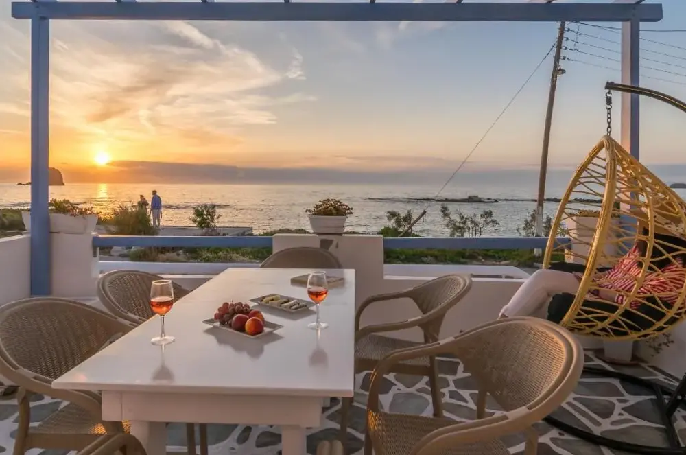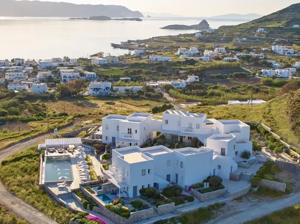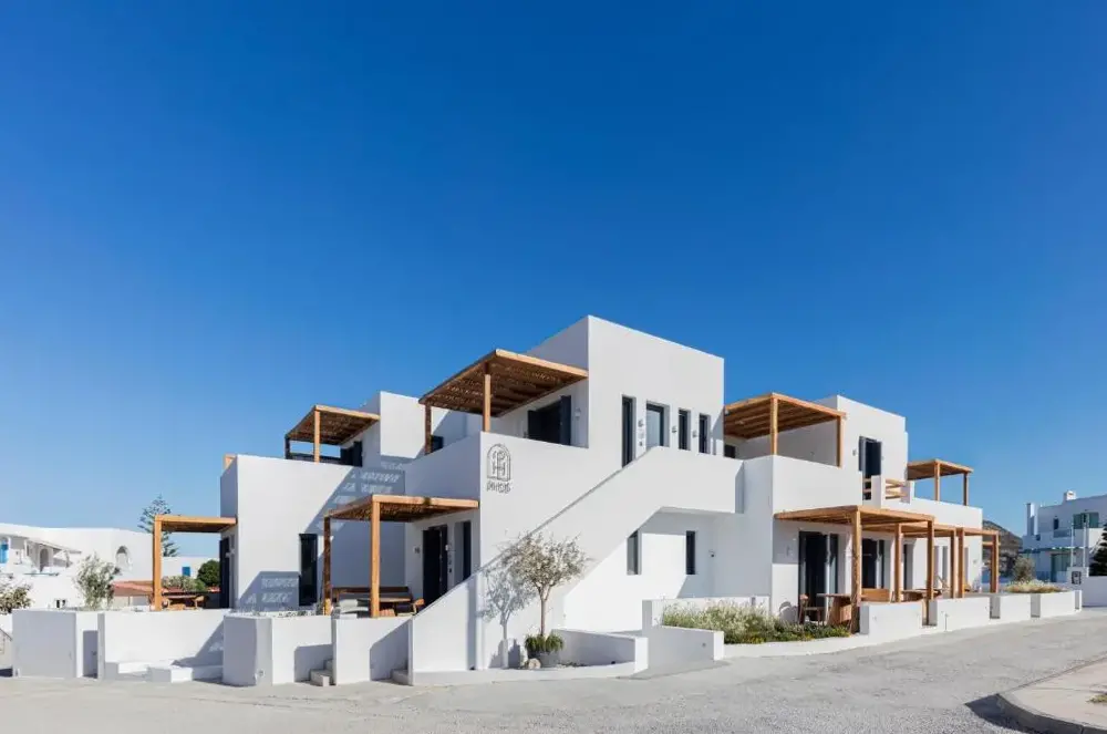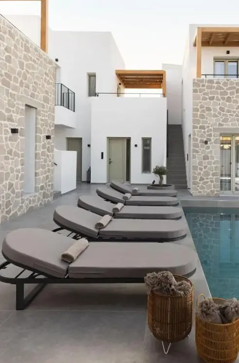More information about Kostantakis Pool houseMilos Breeze Boutique Hotel offers a unique blend of comfort and elegance in Pollonia, Greece. Guests praise its spacious and beautifully designed rooms, complemented by attentive staff who provide exceptional service throughout their stay. The hotel features a complimentary breakfast, free WiFi, and essential amenities such as tea/coffee makers in each room.