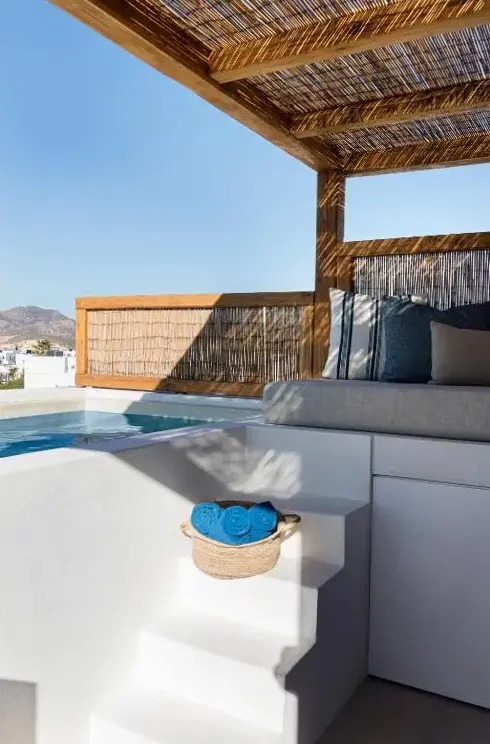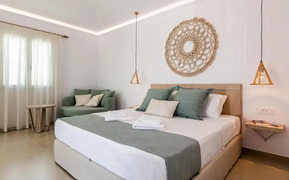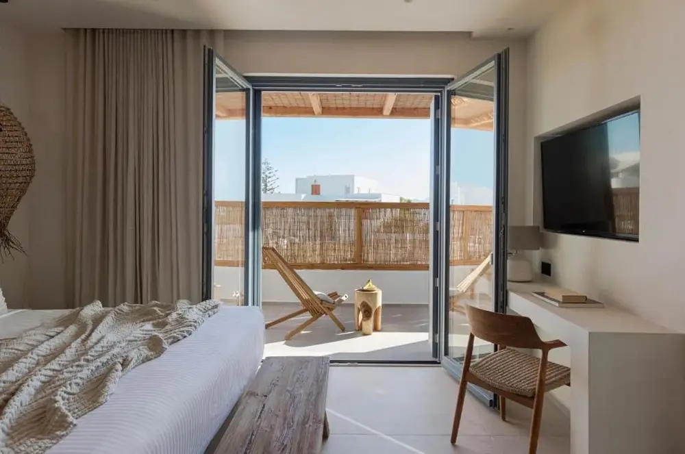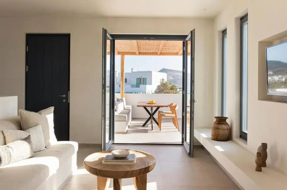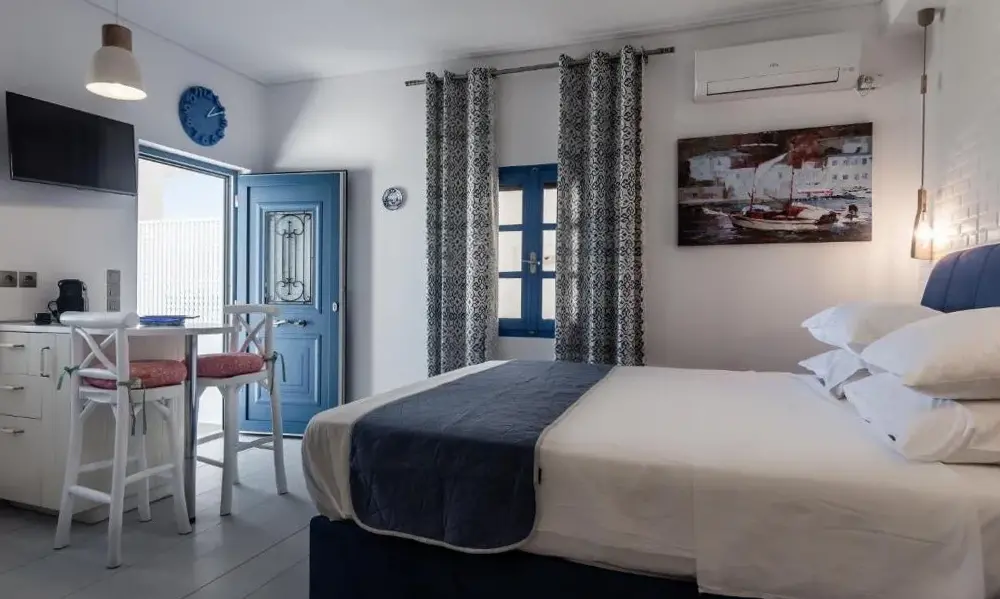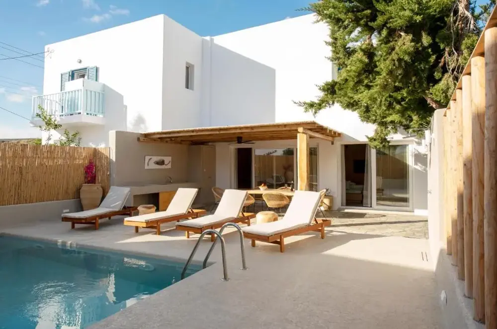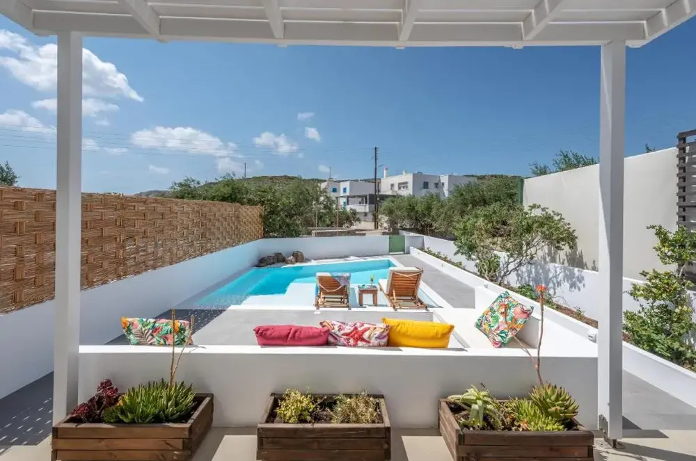 More information about Kostantakis Pool houseMilos Breeze Boutique Hotel offers a unique blend of comfort and elegance in Pollonia, Greece. Guests praise its spacious and beautifully designed rooms, complemented by attentive staff who provide exceptional service throughout their stay. The hotel features a complimentary breakfast, free WiFi, and essential amenities such as tea/coffee makers in each room.