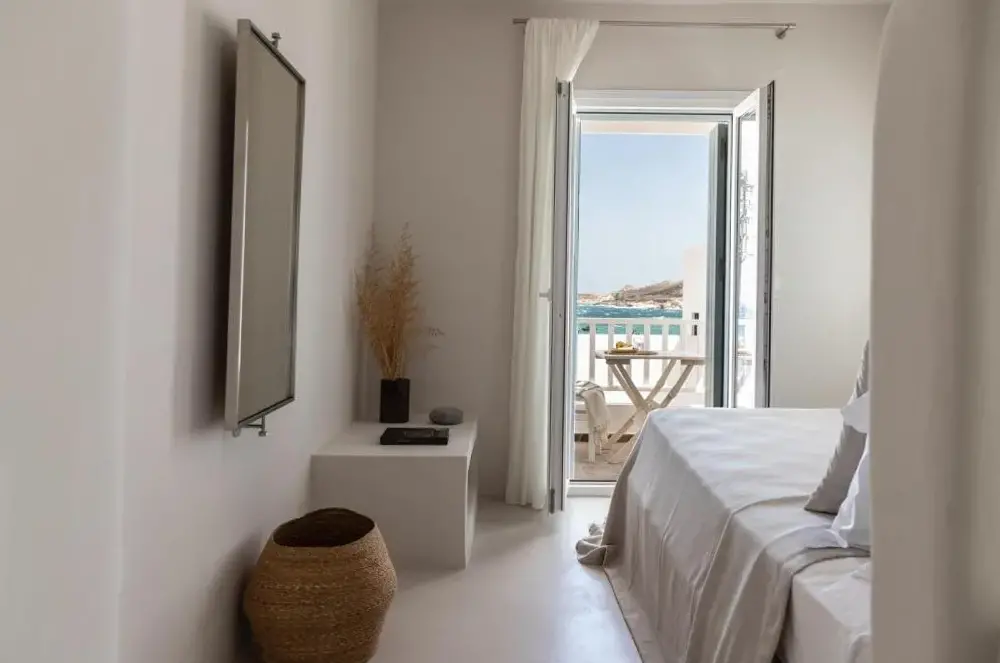 More information about Nove Milos Luxury by EstiaPerla Suites - Delmar Collection offers comfortable accommodations in Pollonia, Greece. Guests can enjoy serene surroundings with easy access to nearby attractions like Fikiada Beach, located just 1.4 kilometers away, and Voudia Beach within 2 kilometers. The property provides free WiFi, airport shuttle service, breakfast, family rooms, and beachfront options.